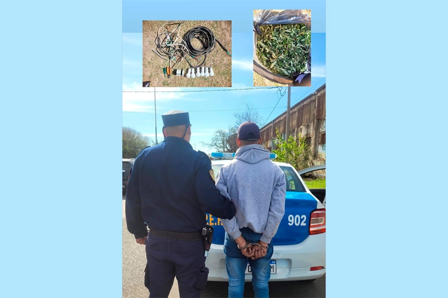 El mismo fue interceptado en calles Pronunciamiento y Palma, teniendo en su poder 6 metros de cable, 6 focos, 1 pinza y 700 gramos de marihuana.