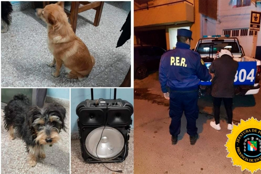 Al ser interceptados, fueron identificados y se pudo establecer que tanto el parlante como las mascotas que llevaban eran de un vecino de calle Boulevard Racedo, el cual había realizado la denuncia por robo en la Comisaría Segunda.