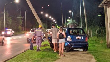 El impacto sufrido por el auto de color azul hizo que su conductor perdiera totalmente el control del pequeño rodado, que terminó subiéndose a la vereda para golpear violentamente contra un poste del tendido del eléctrico, con tanta fuerza que el tronco estuvo a punto de caer sobre la avenida Rösch, pero esto no sucedió porque quedó sujetado por los mismos cables.