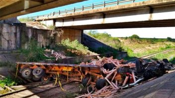 Por causas que se investigan, un camión Ford 1722 que transportaba madera, despistó, chocó un guardarrail y terminó cayendo del puente. El rodado de gran porte terminó destruido sobre las vías del ferrocarril.