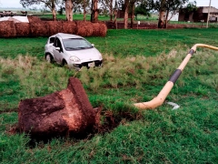 Al intentar esquivar al animal que yacía muerto sobre el asfalto, el Fiat perdió el control y, por motivos que aún están siendo investigados, impactó violentamente contra una columna destinada a la instalación de un semáforo. El tremendo impacto ocasionó la caída de la columna e importantes daños en el vehículo.