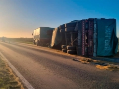 De acuerdo a la información recabada por Elonce, el incidente se produjo cuando el acoplado del vehículo perdió estabilidad y terminó volcando, desparramando los granos sobre el asfalto. Como consecuencia, el tránsito quedó interrumpido en el sector.
