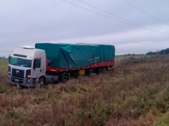 Un camión con acoplado marca Volkswagen, que transportaba cajas de la firma Cartocor, se despistó esta mañana alrededor de las 9 en la ruta nacional 18, a la altura del kilómetro 198. El vehículo, que circulaba con sentido Paraná-Concordia, perdió el control y terminó sobre la banquina derecha.