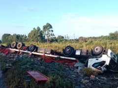 Fuentes policiales comunicaron que el camionero -de 34 años- al momento del siniestro, se movilizaba desde Misiones hacia Buenos Aires para trasladar cerámicos, pero –por circunstancias que serán motivo de investigación- perdió el control del rodado a la altura de una curva y terminó volcando.