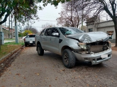 Producto del impacto, la camioneta giró 180 grados y quedó detenida en el centro de la calzada, orientada en sentido contrario al de circulación. El vehículo sufrió importantes daños en su parte delantera.