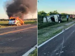 Choque frontal en Ruta 12 terminó con un auto incendiado