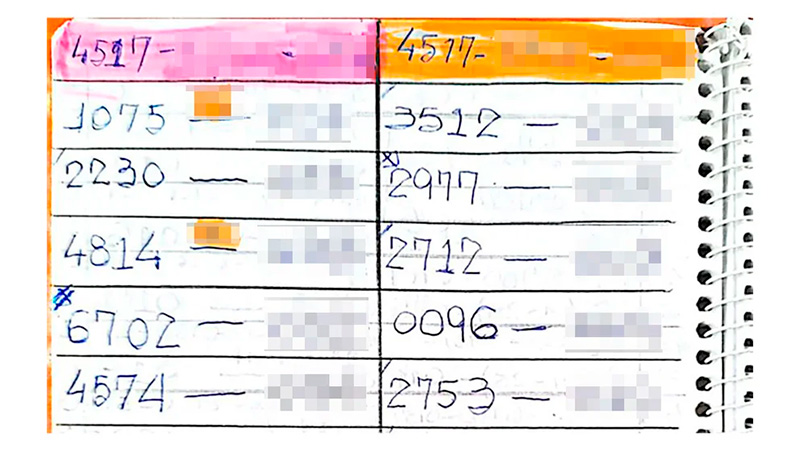 Durante el procedimiento hubo otro hallazgo llamativo: el imputado tenía un cuaderno anillado de 32 hojas en el que se verifica la forma en que realizaba las operaciones y descubría los códigos de seguridad de cada tarjeta. De ese cuaderno se desprende que las estafas fueron más que 169, aunque los otros damnificados no realizaron las denuncias correspondientes. En muchos casos se trató de montos menores, por lo cual los investigadores creen que esas transacciones pudieron haber pasado desapercibidas para los titulares de las tarjetas.
