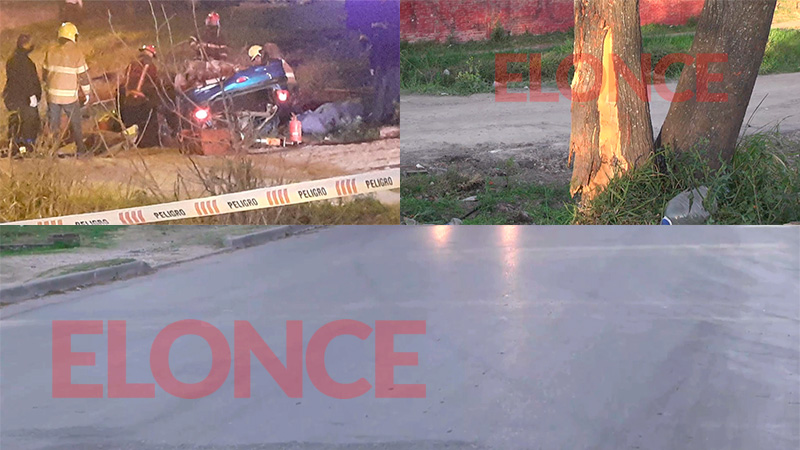 Las marcas en la calle y en el árbol dan cuenta de la violencia del impacto por la velocidad a la que habría circulado el vehículo, registró Elonce TV en las primeras horas de la mañana de este miércoles.
