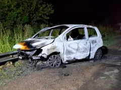 Al arribar al lugar, personal policial constató que sobre el guardarraíl norte de la ruta se encontraba un automóvil Volkswagen Fox, con dominio colocado, totalmente incendiado y con daños del 100% en su estructura.