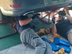 La inspección del rodado permitió detectar otros paquetes ocultos. En la zona interna del paragolpes trasero se encontraron varios bultos envueltos en cinta azul, lo que reforzó las sospechas de los agentes.