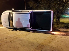 Un hombre en estado de ebriedad protagonizó un accidente esta madrugada en la localidad de Federal, cuando su camioneta volcó en la intersección de las calles Buenos Aires e Irigoyen. En la Ford Ranger, iban el conductor de de 44 años, y un acompañante de 66 años.