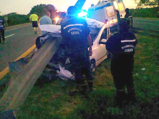 Bomberos de Ceibas debieron intervenir ante un violento accidente de tránsito, ocurrido en el kilómetro 159 de la ruta Nacional 12, el cual fue protagonizado por una camioneta, que terminó incrustándose en el guardarrail.