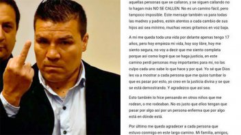 Ahora, L. Baldomir es una joven de 17 y por primera vez desde noviembre de 2016 (cuando su mamá hizo la denuncia por ella), alzó la voz públicamente por Instagram. Sus palabras hacia su "progenitor" son lapidarias, y sus ganas de continuar con su vida, inmensas.