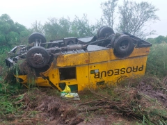 Fuentes policiales confirmaron a Elonce que el chofer, su acompañante y dos custodios, resultaron ilesos como consecuencia del siniestro vial. El vehículo quedó volcado sobre la banquina sur con sus ruedas hacia arriba.