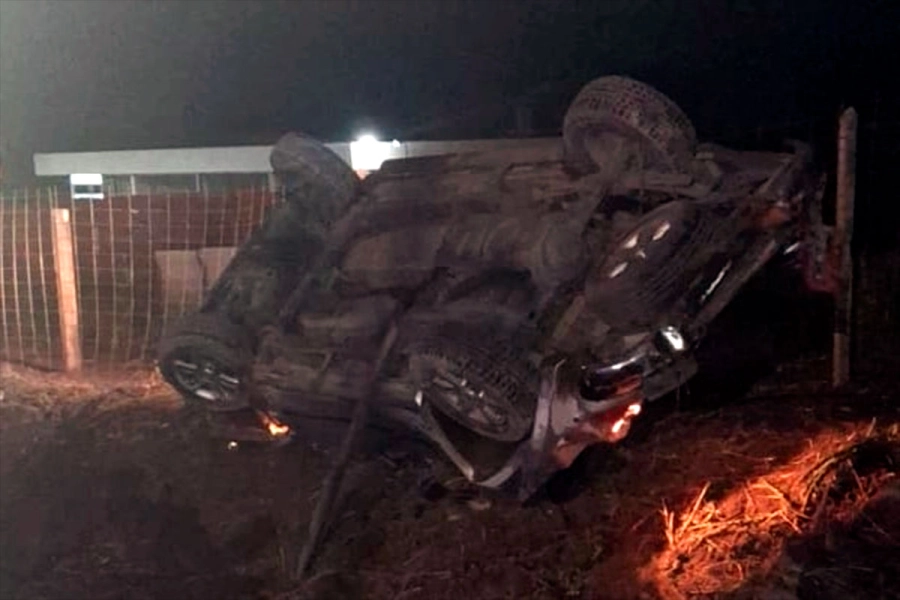El accidente ocurrió pasadas las 19 horas y fue protagonizado por una sola unidad. Por causas que aún se investigan, el conductor del vehículo perdió el control y la camioneta terminó volcada, quedando con sus cuatro ruedas hacia arriba.