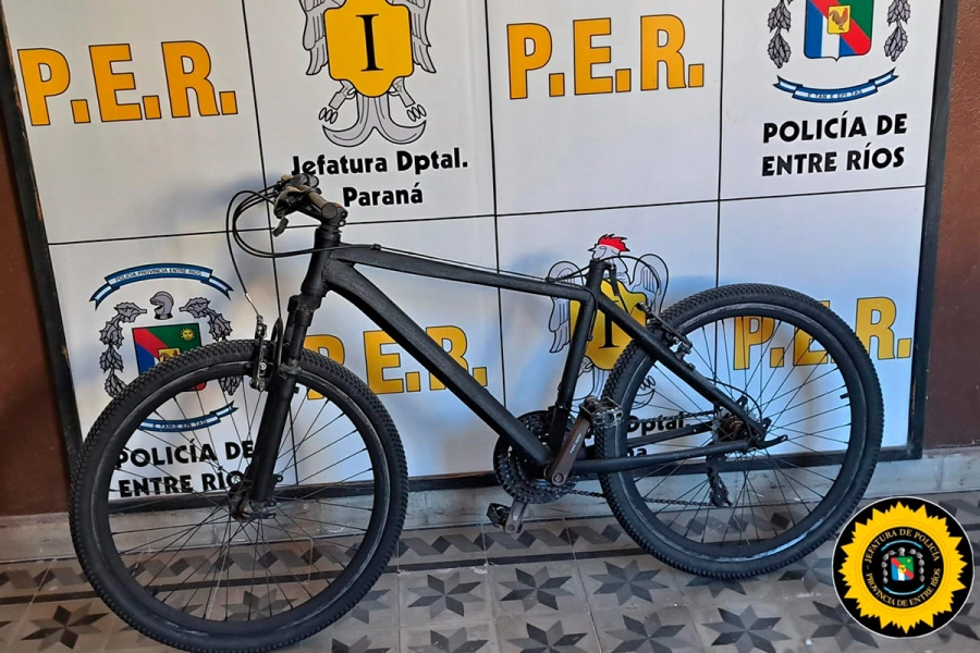 Personal de la Sección Investigaciones halló el rodado en calle Chacabuco, estacionado en la vereda previa al ingreso de un pasillo. La bicicleta había sido re-pintada de color negro y presentaba la faltante del asiento, pero conservaba particularidades estructurales que permitieron identificarla.