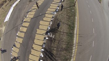 La droga iba escondida en un camión y cubierta con viruta de madera. Tras el procedimiento, el drone de la Policía de Entre Ríos recorrió el lugar. El cargamento visto desde el aire.