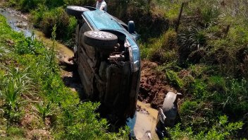 Un automóvil circulaba por avenida 28 de Mayo, de sur a norte, cuando despistó y volcó en la banquina.