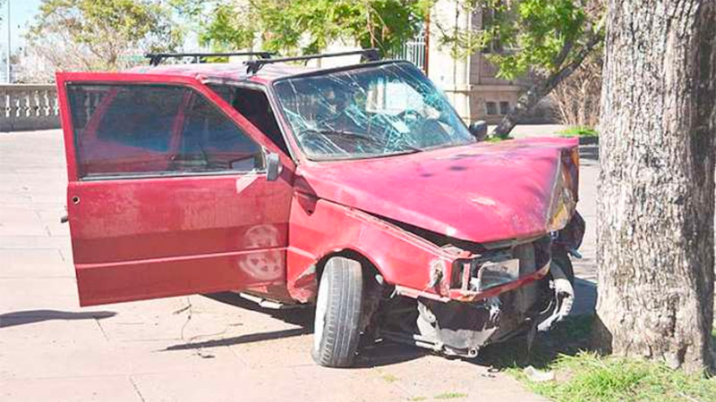 En horas de la madrugada del lunes un vehículo marca Fiat, modelo Uno, color bordó con vidrios polarizados fue protagonista de un violento choque contra un árbol, luego de subir la vereda