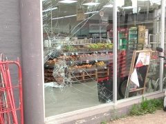 Investigan los daños materiales registrados en la vidriera de un supermercado ubicado en la intersección de Avenida Ramírez y calle Carlos Para. Según los primeros indicios, delincuentes habrían intentado sustraer bebidas alcohólicas del local, aunque no se concretó el robo.