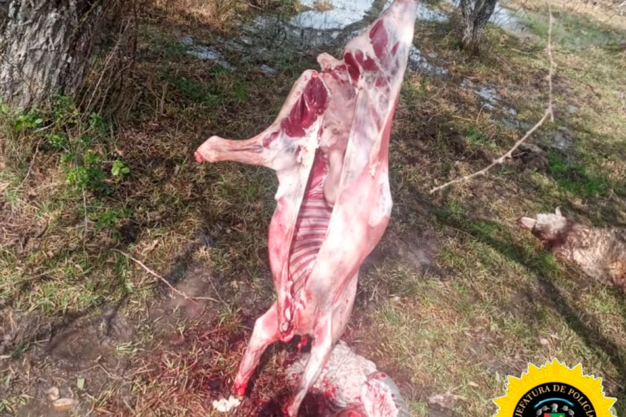 Las ovejas faenadas fueron examinadas por el Veterinario Policial, quien certificó la situación, y posteriormente se procedió a su devolución al propietario del establecimiento.