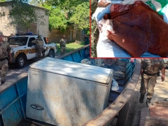 Dos hombres de 32 y 37 años, fueron detenidos en la zona del puerto de Victoria, a donde arribaban en una canoa, a bordo de la cual, transportaban un freezer. Al revisar el artefacto, hallaron un vacuno faenado de manera clandestina.