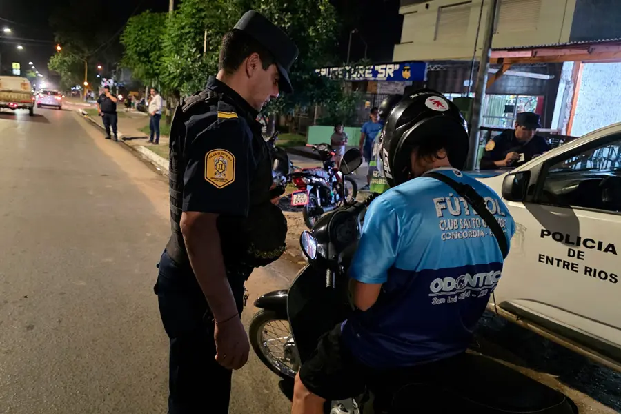 Un amplio operativo policial se desplegó en distintos puntos de la ciudad de Concordia, con controles vehiculares y de identificación. Hubo secuestro de motos, multas de tránsito y la detención de un joven acusado de atentado y resistencia a la autoridad.
