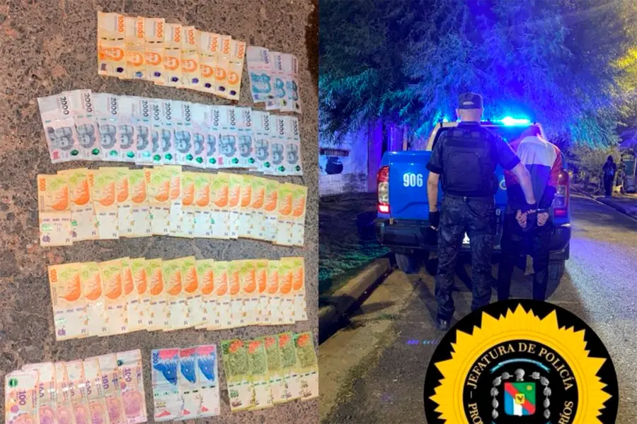 Durante el procedimiento, los uniformados realizaron un palpado y hallaron en su poder una bolsa de nylon con una sustancia blanca, además de 105.800 pesos en efectivo.