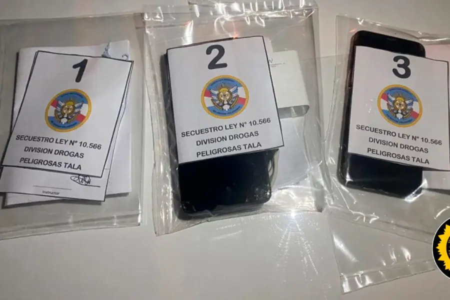 Tras la requisa, los efectivos secuestraron dos envoltorios de nylon que contenían clorhidrato de cocaína. En el procedimiento también se incautaron dos teléfonos celulares, elementos que quedaron a disposición de la Justicia para continuar con la investigación.
