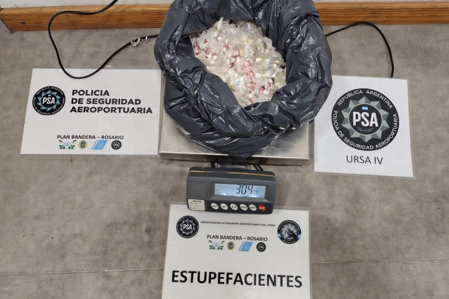 En el interior del bolso se hallaron 13.000 pesos en efectivo y 902 envoltorios con una sustancia blanquecina. Al ser sometida a un reactivo químico, se confirmó que se trataba de clorhidrato de cocaína, con un peso total de 304 gramos.