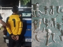 Según se informó desde la Policía, circulaba por la zona con una bolsa y en “actitud sospechosa”. Una patrulla que pasaba por el lugar le solicitó que muestre lo que llevaba adentro. En ese momento, el hombre sacó una bolsa de friselina que tenía 13 griferías de baño con sus respectivas cañerías de plomo.