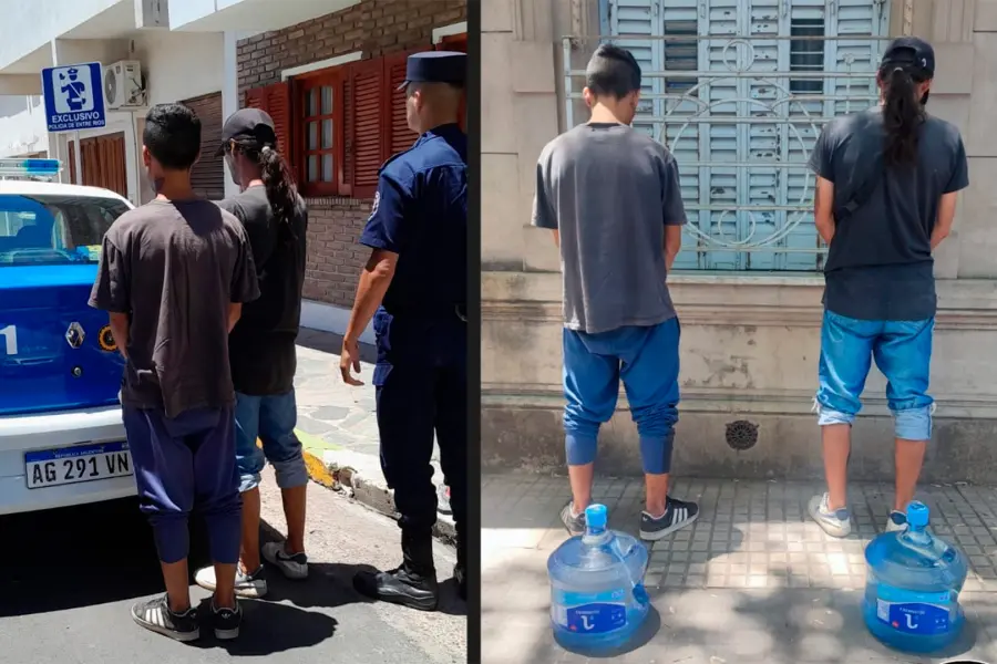 Por otra parte, personal de la Comisaría Primera que estaba patrullando por calle Alameda de la Federación y Santa Fe, fue alertada por un cuida coches sobre dos hombres que estaban ofreciendo bidones de agua que habían sido sustraídos de calle Buenos Aires.