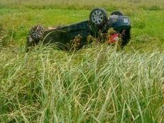 Se produjo un accidente en la Ruta Nacional 12, a la altura del kilómetro 209, en jurisdicción del Destacamento Uno Médanos. Un Ford KA, conducido por una mujer de 45 años, volcó en la ruta, quedando con las ruedas hacia arriba.
