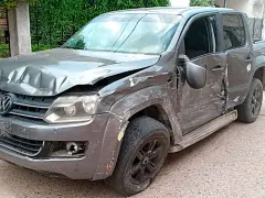 Producto del choque, la Amarok se desvió de su trayectoria e impactó contra un Chevrolet Corsa Classic gris que se encontraba estacionado en la zona. El auto sufrió severos daños en la parte trasera, con el baúl hundido aproximadamente 20 centímetros a raíz de la violencia del golpe.
