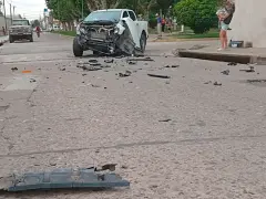 Dos camionetas protagonizaron un fuerte choque en la intersección de Suipacha y Congreso de Victoria. Uno de los vehículos terminó girado sobre la calzada y otro auto estacionado resultó con importantes daños. No hubo personas lesionadas.