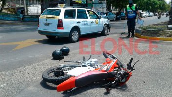 Pasado el mediodía de este lunes, se produjo un accidente de tránsito en la Costanera Baja de Paraná, que tuvo como protagonistas a una motocicleta y un taxi de la empresa Tele Radio.