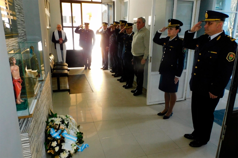 El evento incluyó una invocación religiosa por parte del padre Gregorio Nadal y la colocación de una ofrenda floral en el hall de la Jefatura, destacando el sacrificio de los efectivos.