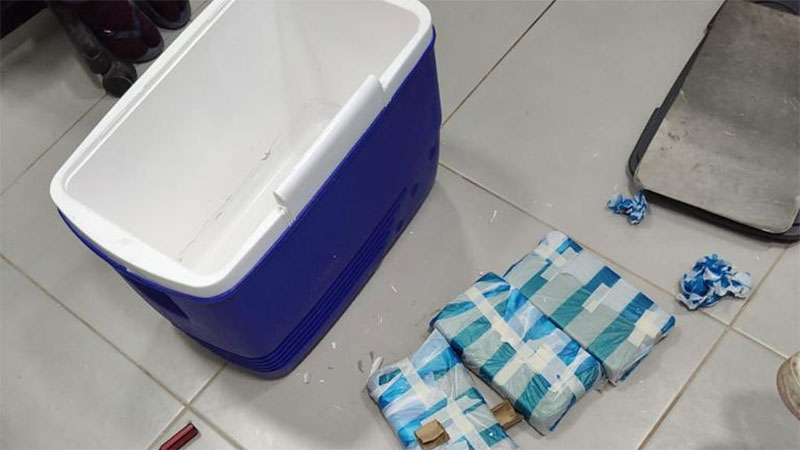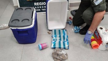 Al requisar las heladeras que la sospechosa transportaba en sus espaldas, los gendarmes descubrieron unos dobles fondos en lo que había dos conservadoras plásticas que contenían 6,380 kilos de cocaína.