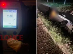 Un hombre de 66 años protagonizó un siniestro vial este sábado por la noche, cuando perdió el control de su vehículo y terminó en una zanja. El test de alcoholemia dio resultado positivo con 2,08 gramos de alcohol en sangre.