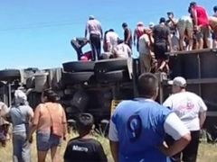 Tras el accidente, ocurrido este martes, rápidamente los vecinos de la zona acudieron al lugar y comenzaron a faenar los animales en la banquina. La situación se desbordó rápidamente, generando un caos total en la zona.