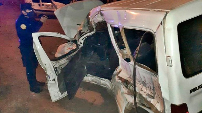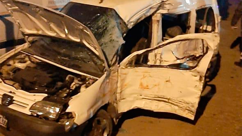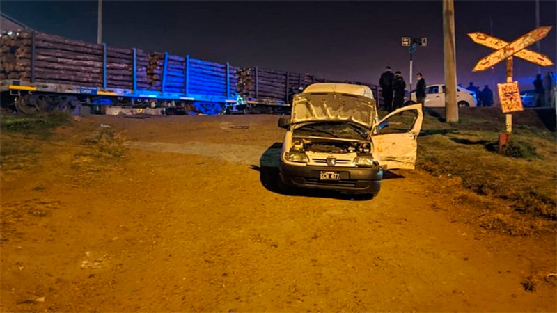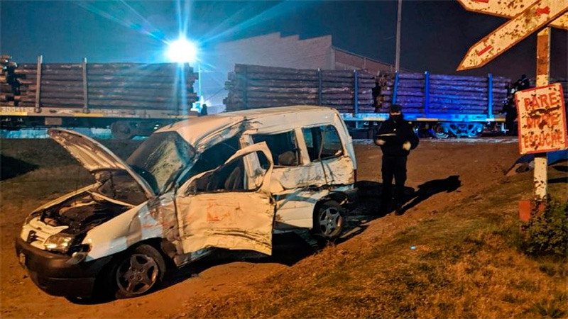Una utilitaria marca Peugeot -modelo Partner- transitaba en sentido sur-norte, cuando fue impactada por una formación ferroviaria que ingresaba a la ciudad, desde el norte de la provincia, cargada con postes de madera.