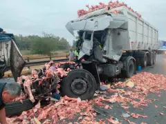 El primero de los choques ocurrió en el kilómetro 150, mano hacia la Ciudad, alrededor de las 2 de la madrugada. Estuvieron involucrados dos camiones. Uno de ellos, que transportaba deshechos de carne, quedó con la parte frontal totalmente destrozada y su conductor fue trasladado a un hospital de la zona con múltiples fracturas.