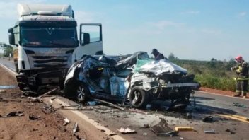 Los primeros relevamientos que realizó la Policía de Corrientes en el lugar permitieron establecer que el auto se cruzó totalmente de carril e impactó contra la parte frontal de un camión Scania, que se desplazaba hacia Misiones con carga y era conducido por un hombre de 32 años.