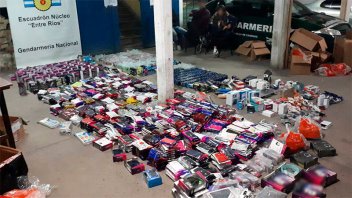 Personal de Gendarmería Nacional contabilizó 1.412 vidrios templados para celulares, 1.407 fundas para celular, 26 auriculares vincha, 72 auriculares comunes, tres alargues para electricidad, 28 cables auxiliares para celular, un teclado, cuatro luces led, 170 baterías para celular, 66 memorias micro SD, siete pendrives, 26 módulos LCD para celular, 57 cargadores para auto, 23 cargadores portátiles para celular, 23 vidrios templados para tablet, tres soportes para GPS, 56 cables USB, cuatro trípodes para selfie, cuatro bastones para selfie, 25 soportes para celular, dos soportes para tablet, 12 mouses para computadoras, 19 parlantes USB. Con un avalúo estimado en 1.062.980 pesos.