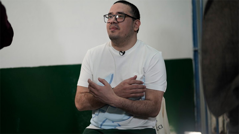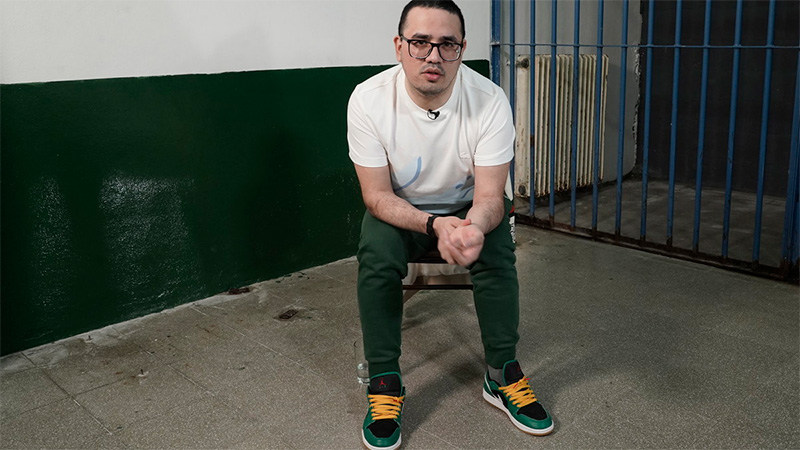 Fue la primera vez que estuvo cara a cara con un equipo periodístico. Entró a la sala destinada para el reportaje vestido a todo lujo: campera Gucci, remera y pantalón Lacoste y zapatillas Nike Jordan. El desborde de dinero en “pilchas” no pudo ocultar, sin embargo, su desesperación por el régimen de aislamiento en el que vive.