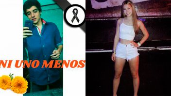 Una cámara muestra a los dos jóvenes cuando iban en la moto. Tras el crimen, la chica dejó el arma de su padre en su lugar y se bañó. "Ni uno menos" señalan en un afiche los organizadores de la marcha por Justicia.
