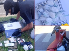 Secuestraron 21 envoltorios de cocaína que arrojan un poco más de 10 gramos, dinero en efectivo por más de 700 mil pesos, un aire comprimido tipo réplica de Glock y una moto Tornado 250; fue tras un procedimiento desarrollado ayer en la esquina de Avenida Brown y Avenida 9 de Julio, en la ciudad de Chajarí.