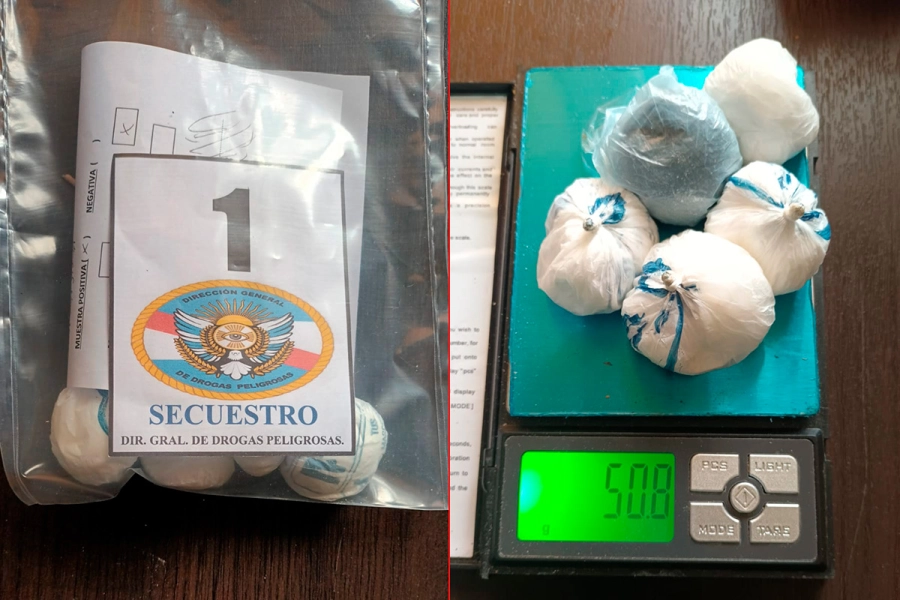 Los análisis preliminares, realizados mediante test de campo, arrojaron resultado positivo para cocaína, con un pesaje total de 50,8 gramos. Por disposición del fiscal interviniente, la droga fue secuestrada y se iniciaron las actuaciones judiciales correspondientes.