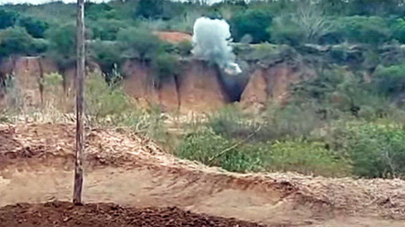 En el video difundido por Mercurio Noticias, se puede observar la detonación del dispositivo en una cantera de la ciudad de Villaguay.