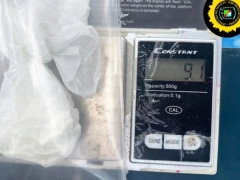 Se realizaron las pruebas de campo y pesaje, arrojando resultado positivo para clorhidrato de cocaína con un pesaje de 9.1 gramos que fue secuestrado de forma preventiva por personal de Toxicología.